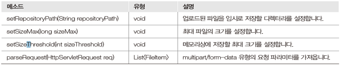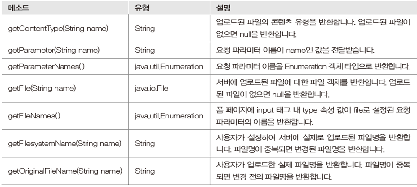 - 웹 페이지에서 서버로 업로드되는 파일 자체만 다루는 클래스
