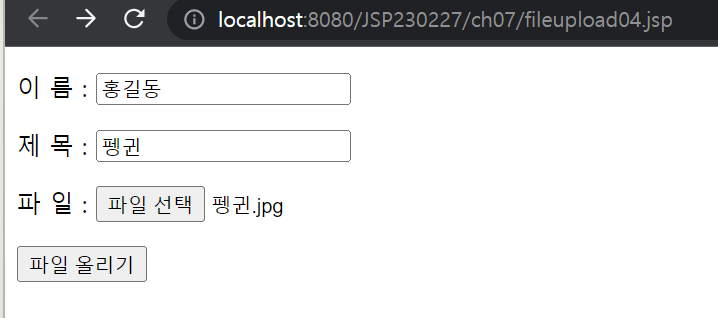 <form name="fileForm" method="post" enctype="multipart/form-data" action="fileupload04_process.jsp">