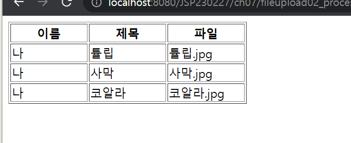 out.println("요청 파라미터 이름 : " + fileFieldName + "<br>");