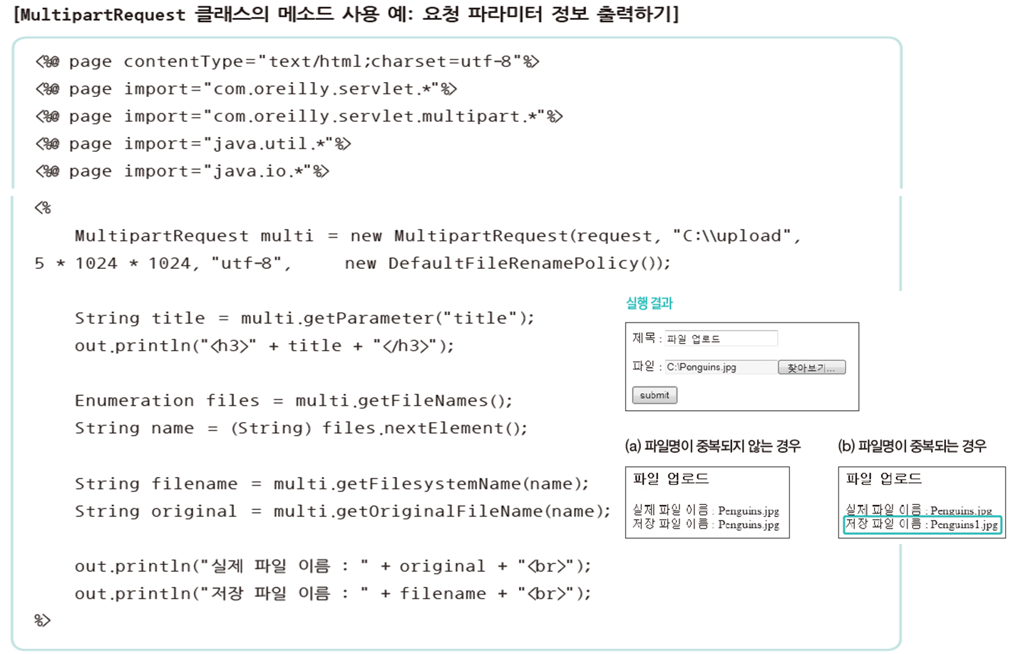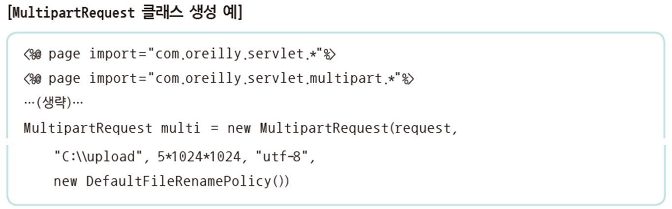 - JSP 페이지에 page 디렉티브 태그의 import 속성을 사용하여 패키지 com.oreilly.servlet.*을 설정