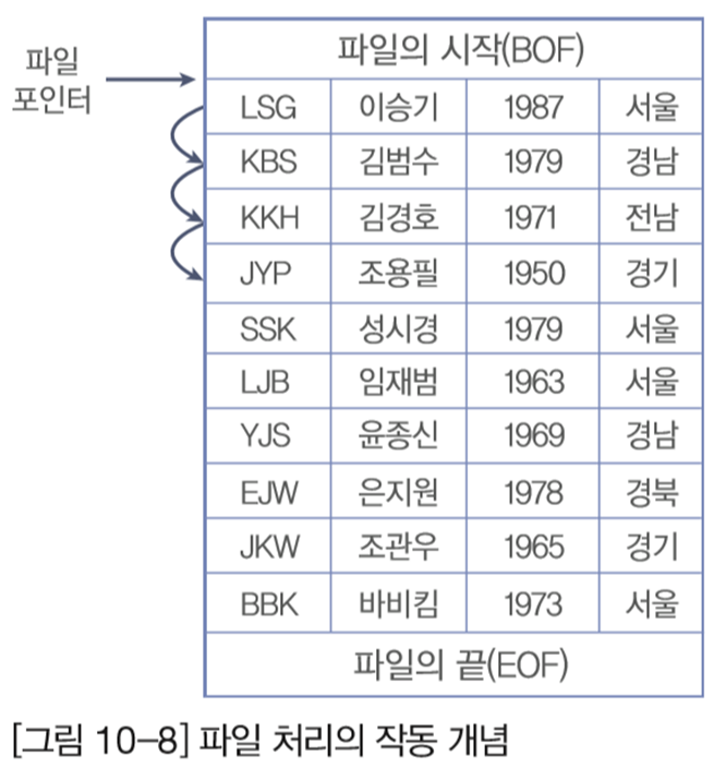 - 일반 프로그래밍 언어의 파일 처리와 방법이 비슷함